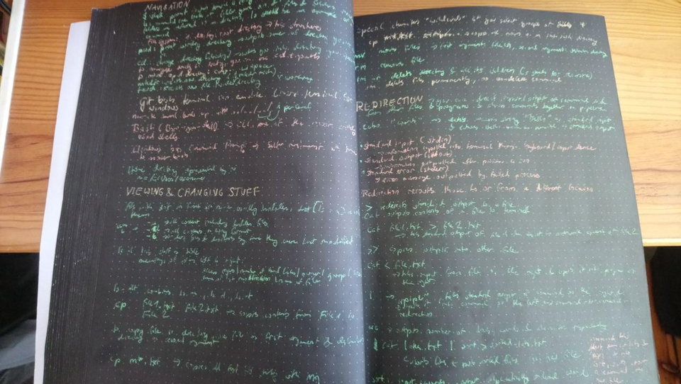Mein Notizbuch mit schwarzem Hintergrund nutze ich, um mir stilvoll und thematisch passend Notizen zu meinem Web-Development-Kurs zu machen: