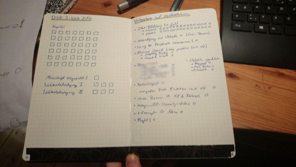Oder ich halte fest, was ich in meinem aktuellen Manuskript noch verbessern muss: