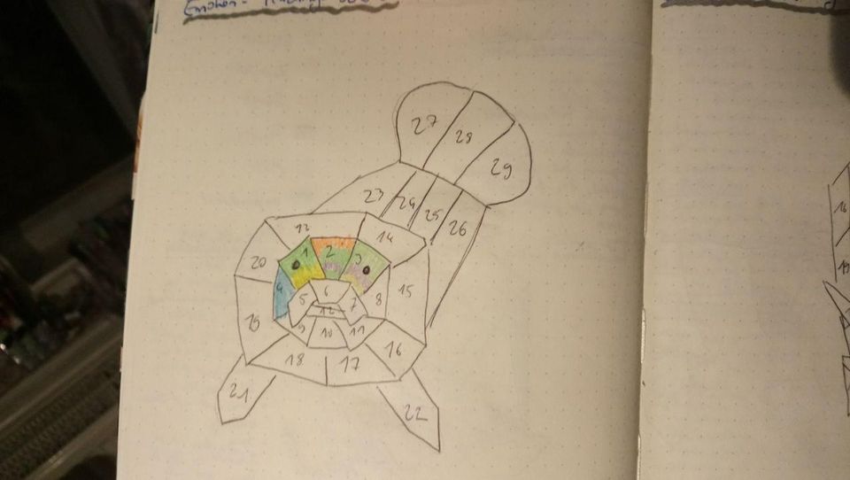 Neben tatsächlich nützliche Einträgen, die mich z.B. daran erinnern, welche Blogposts und Kurzgeschichten ich noch schreiben will, To-Do-Listen für den Alltag und Sammlungen loser Notizen für zukünftige Schreibprojekte mache ich auch so wunderbar unnötige Dinge, wie meine Stimmung zu dokumentieren, indem ich nach und nach eine Mood-Tracking-Rundschwanzseekuh gestalte:
